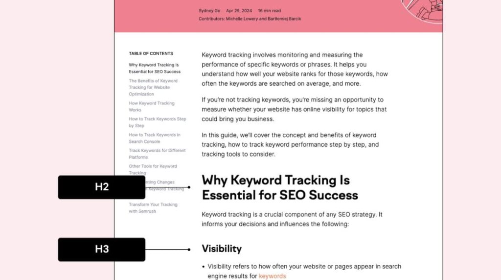 For example: A “Fitness at Home” blog could have an H2 of “Daily Workout Routines” and an H3 below that of “Morning Stretches” or “Evening Cardio.”