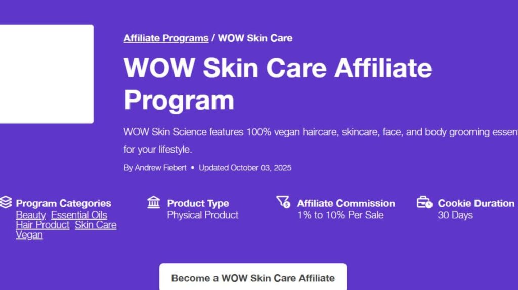 This program offers a 10–12% commission. The best part is that WOW products are used by men, women, and teenagers. This is a great choice if you create health or natural beauty content.