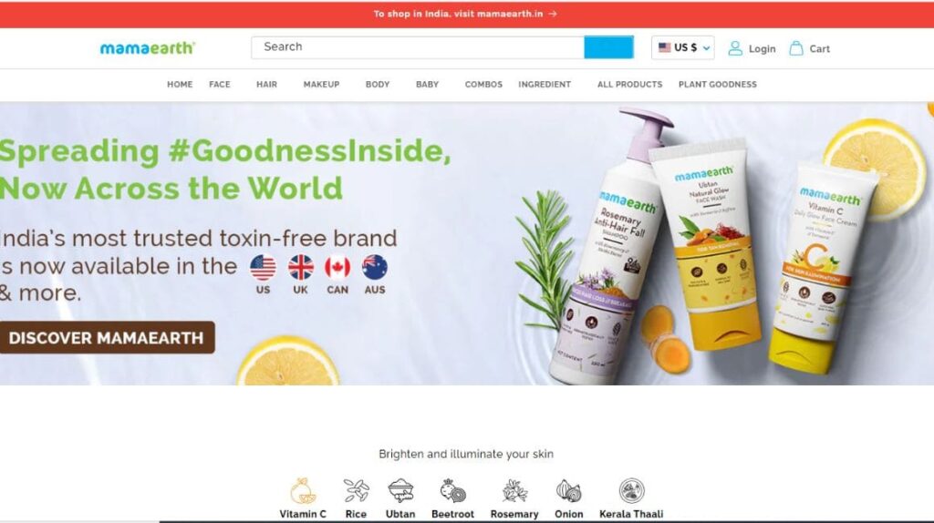 Mama Earth is known for its natural and chemical-free products. Their face washes, creams, serums, and baby care products are quite popular.